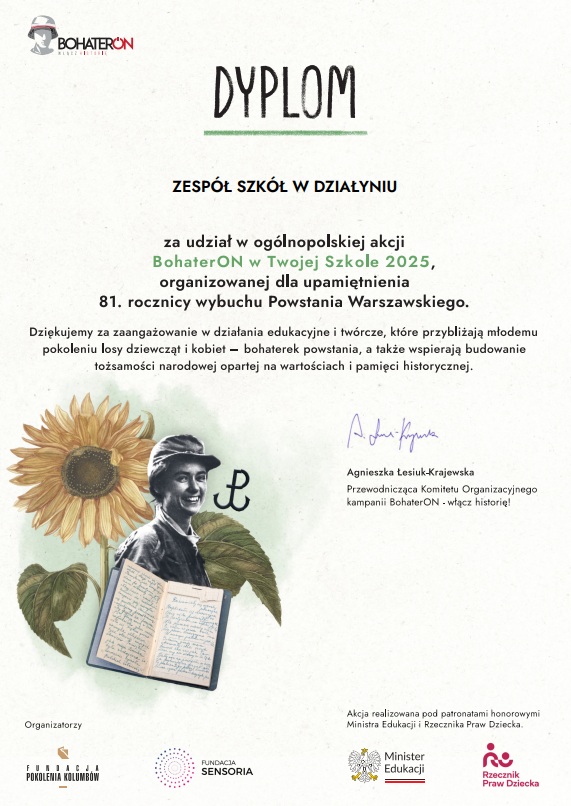 BohaterON w Zespole Szkół w Działyniu