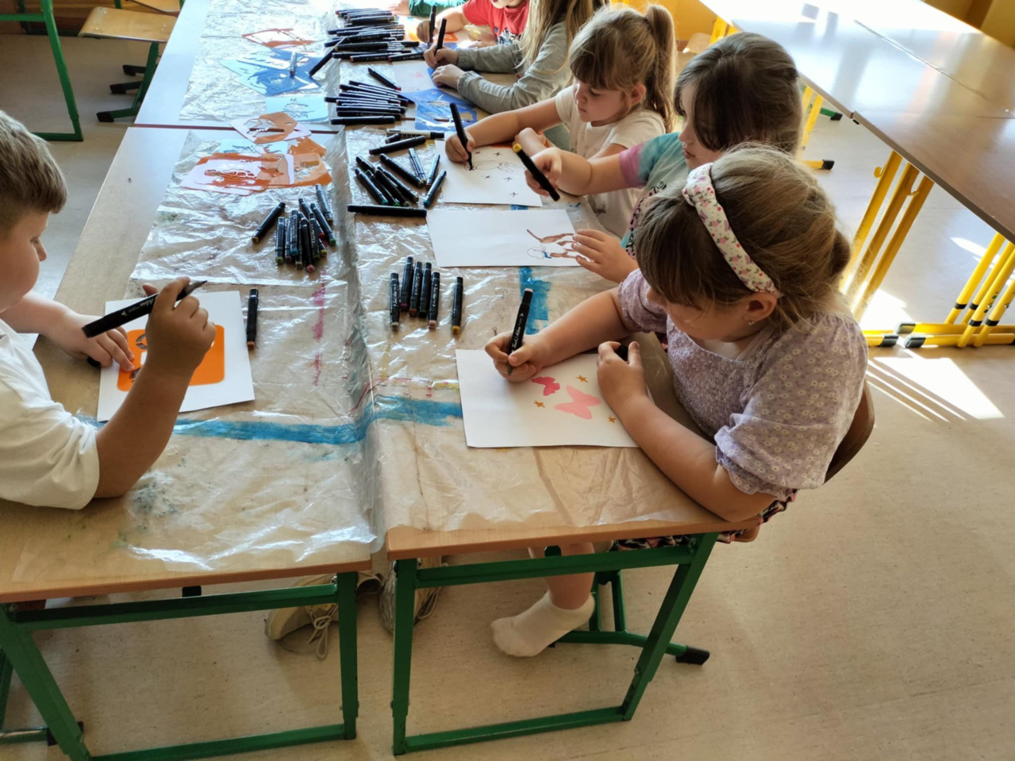 Na początek każdy młody artysta wykonał szkic swojego projektu – pomysły były najróżniejsze. W powietrzu czuć było twórczą energię, a kartki szybko zapełniały się barwnymi szkicami.