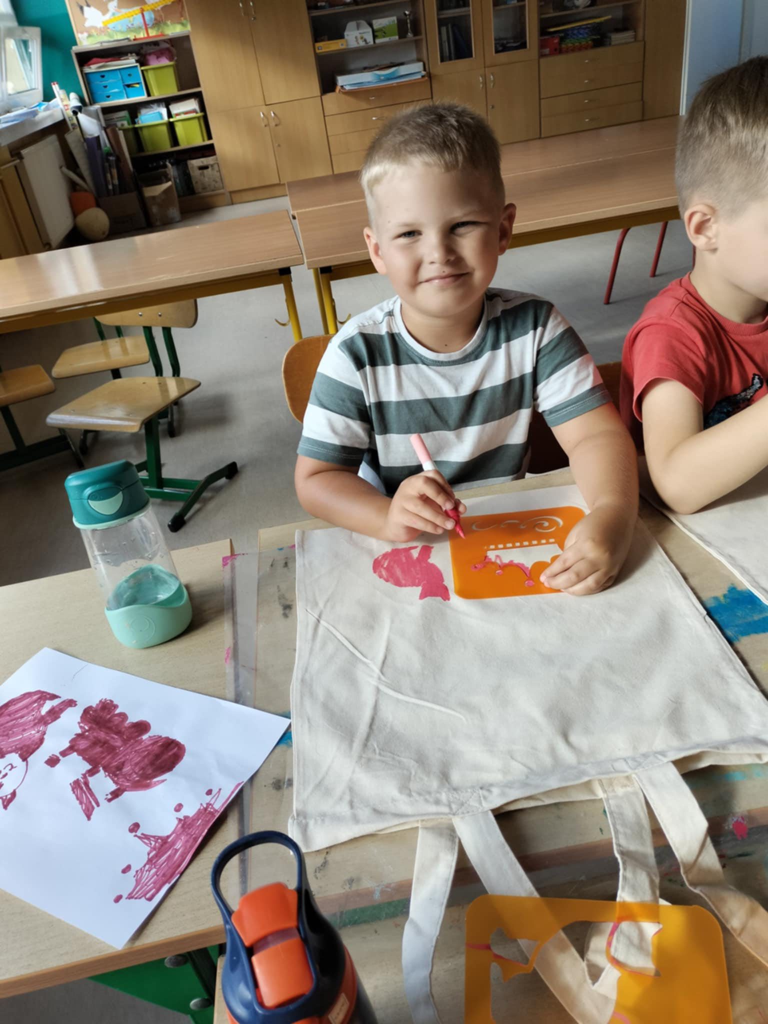 Podczas dzisiejszych warsztatów dzieci zamieniły się w prawdziwych projektantów mody! Z ogromnym zaangażowaniem i wyobraźnią tworzyły swoje autorskie wzory na torbach bawełnianych.